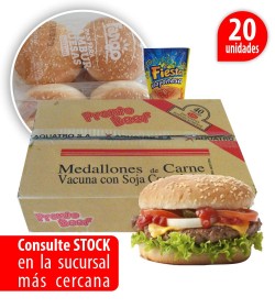 20 Hamburguezones Pronto Beef 125gr combo con pan y aderezo